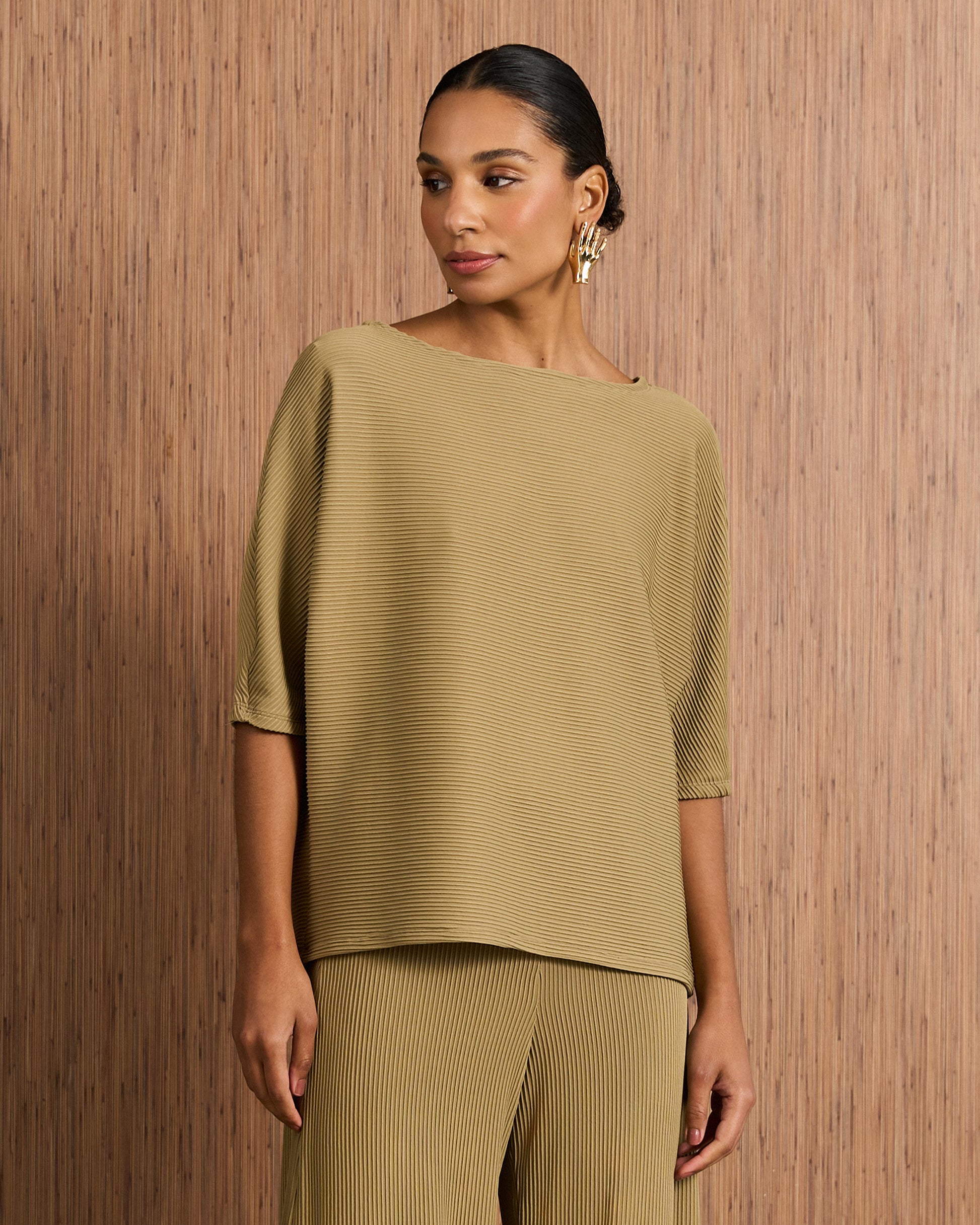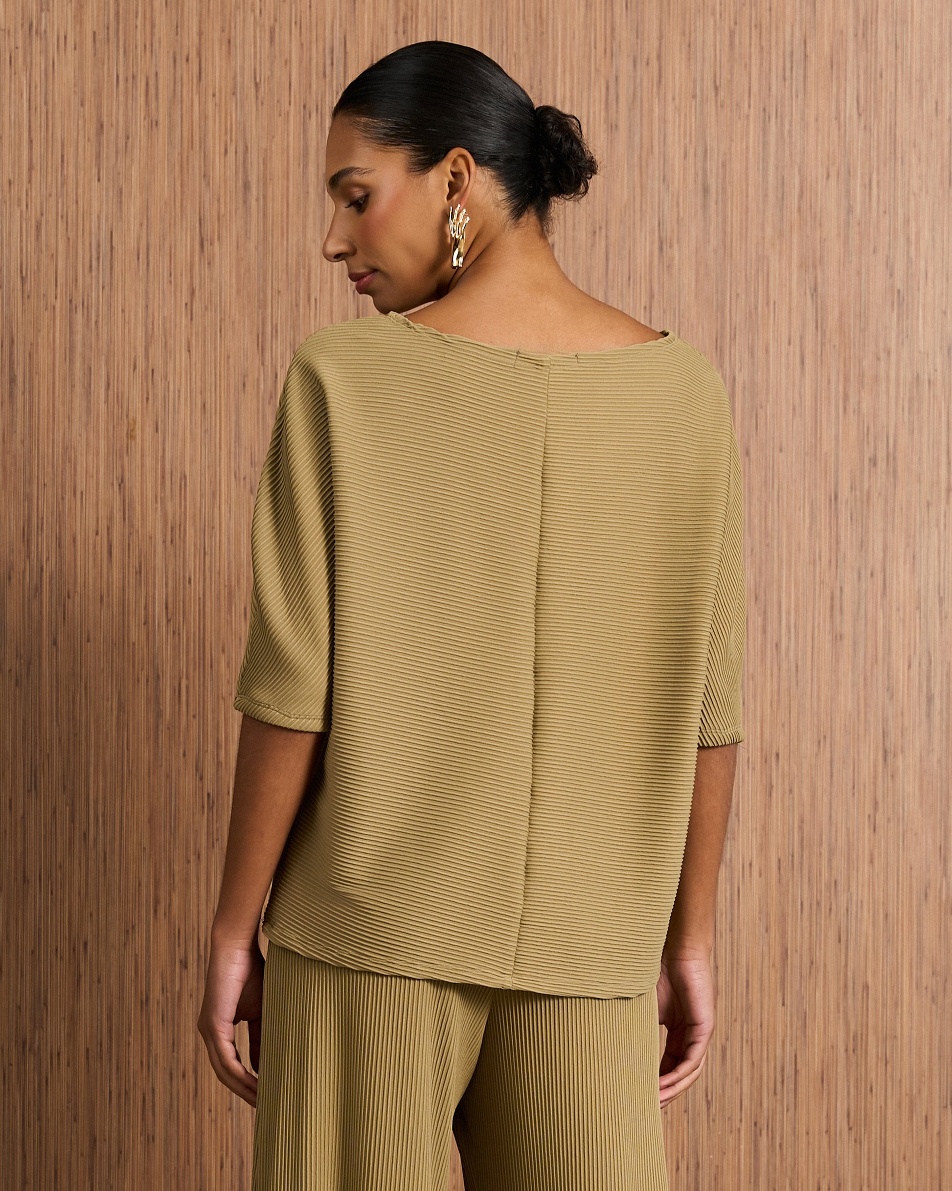 A Blusa Conceito foi desenvolvida em malha canelada de poliamida, de toque macio e caimento estruturado, mas com movimento. Possui modelagem reta e decote canoa. Mangas ¾ amplas, mas com punho ajustado completam o visual versátil, ideal para produções casuais e modernas.