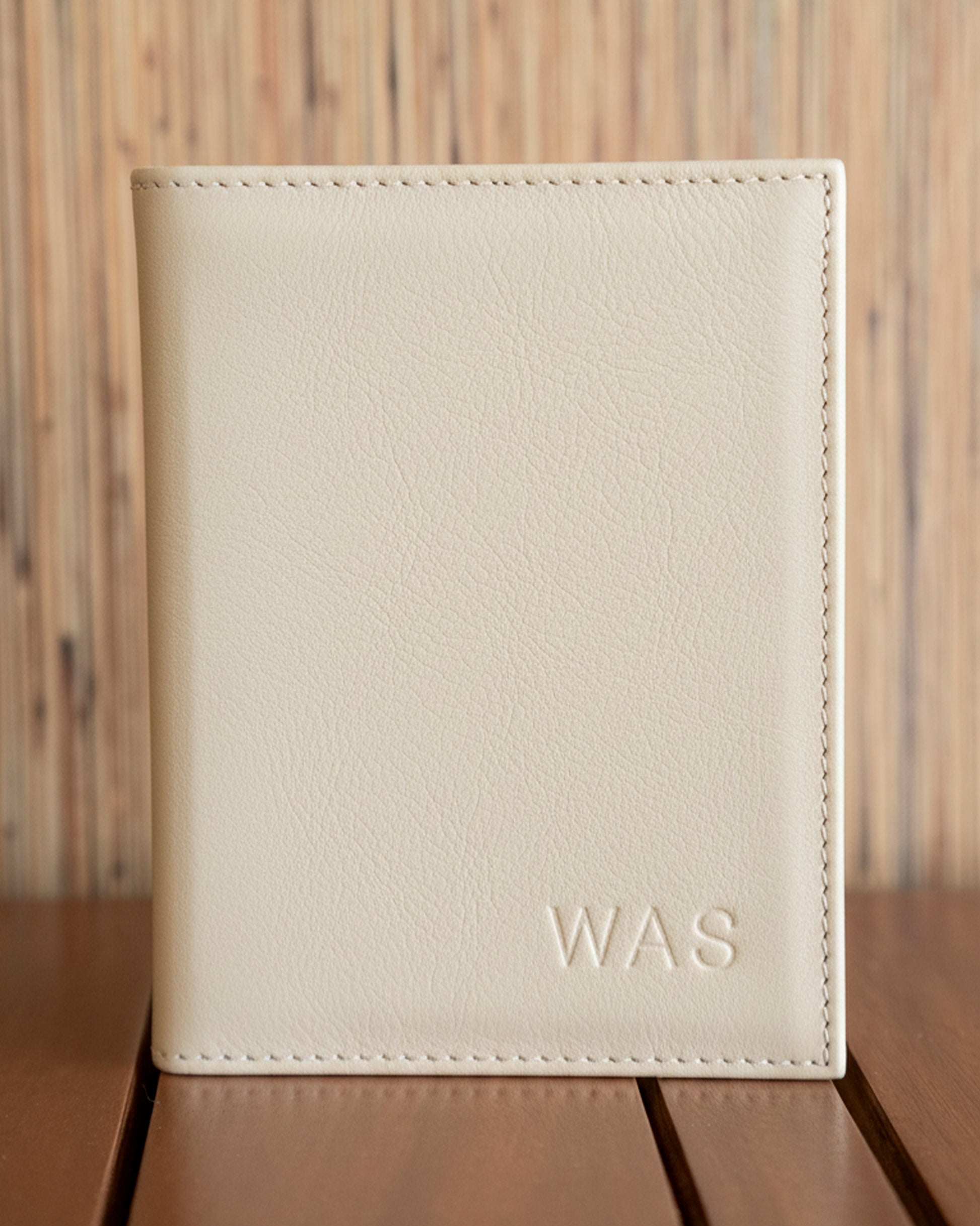 Porta passaporte em couro off-white.