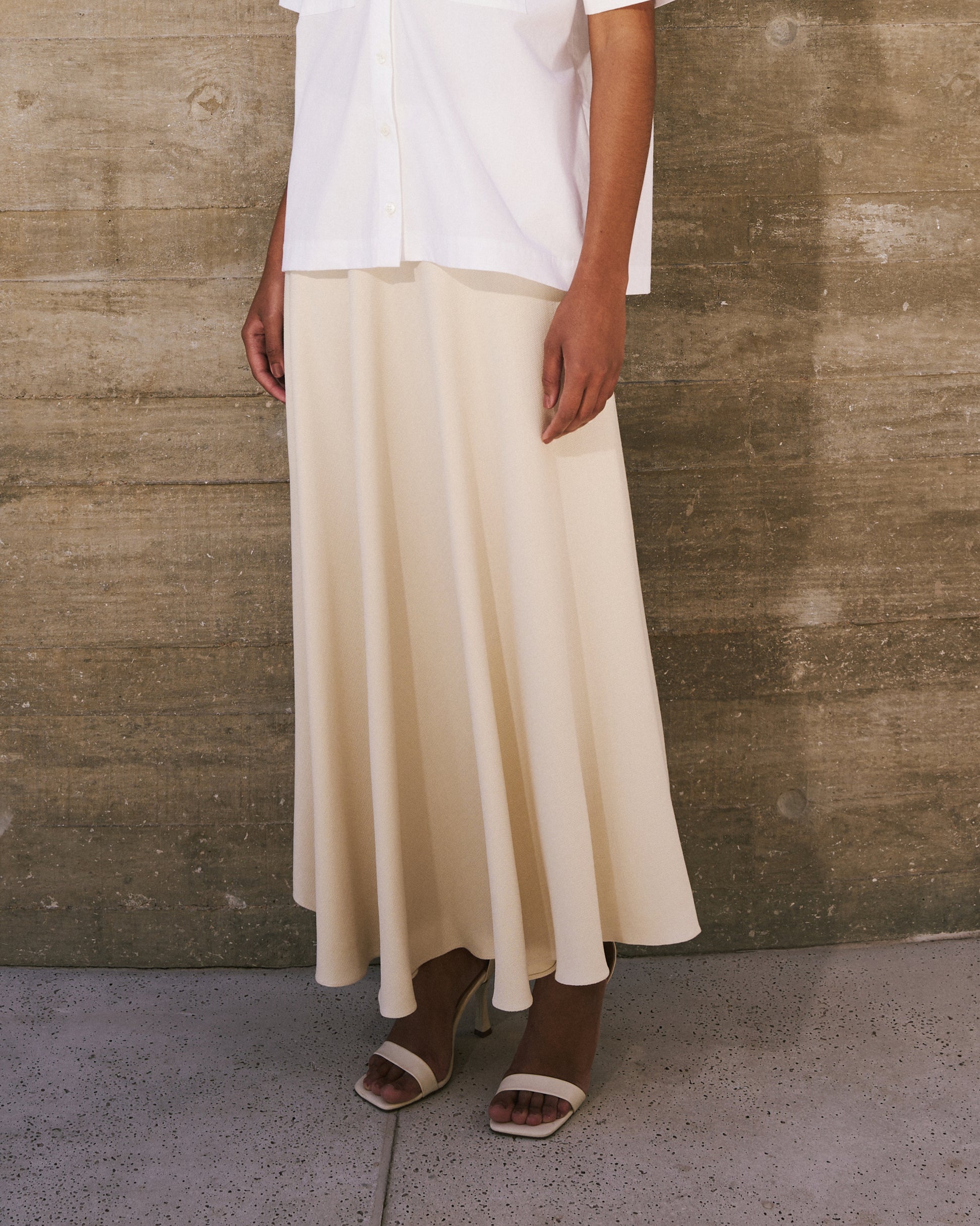 A Saia Godê é confeccionada em tecido 100% viscose, oferecendo leveza, fluidez e movimento. Com modelagem ampla e rodada, valoriza a silhueta de forma elegante, tornando-se uma peça versátil. Possui cós limpo, que confere acabamento minimalista, e fechamento lateral por zíper invisível.