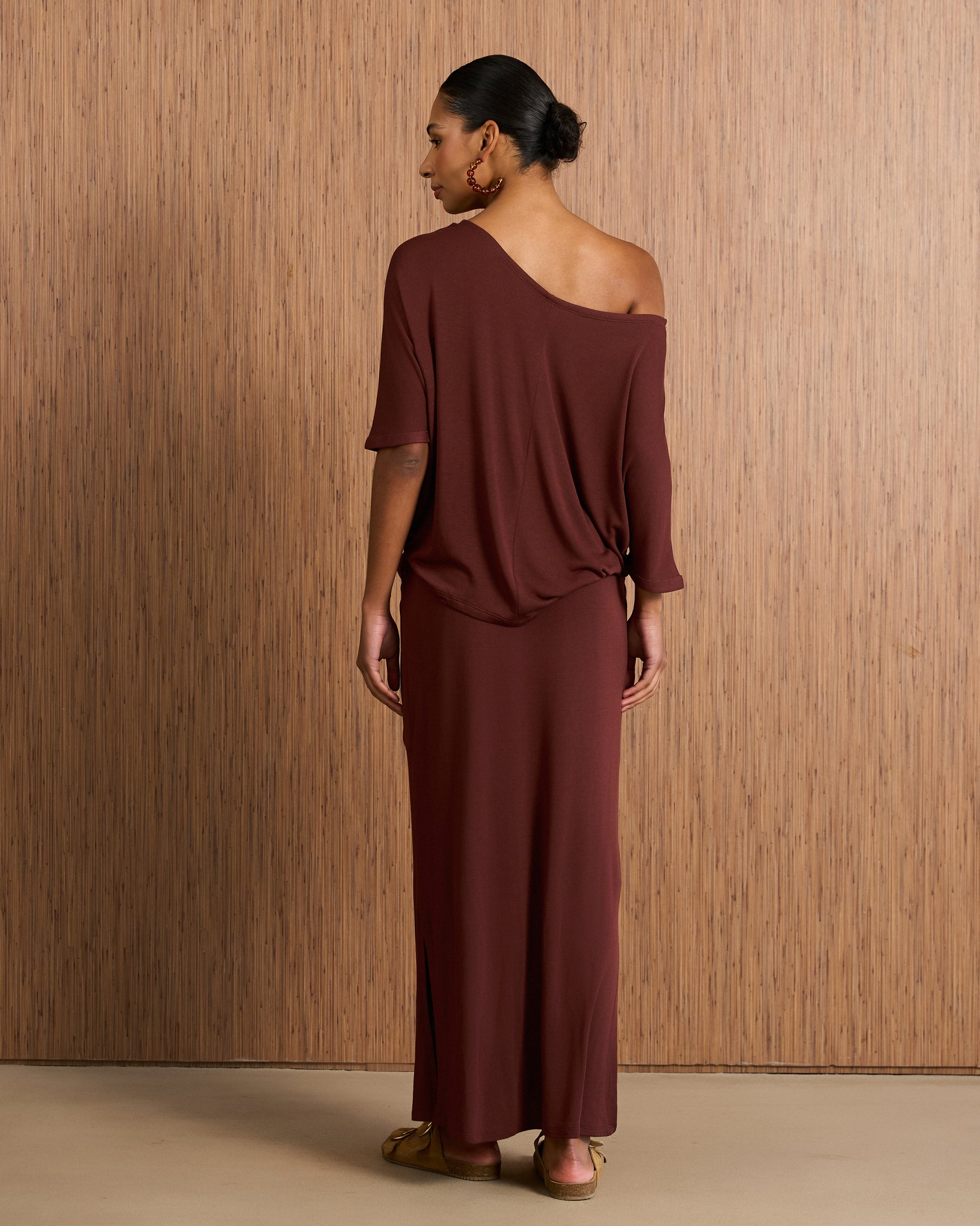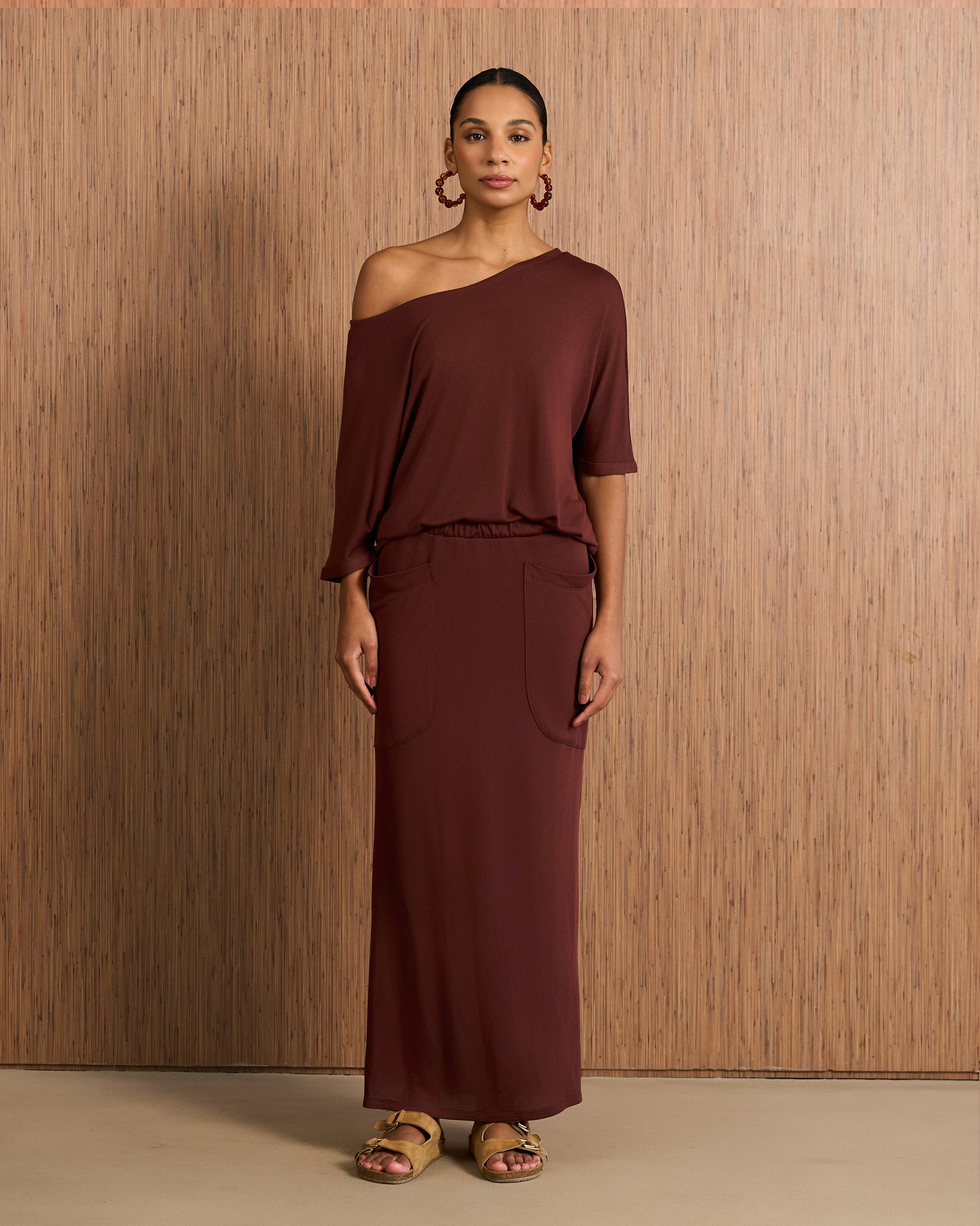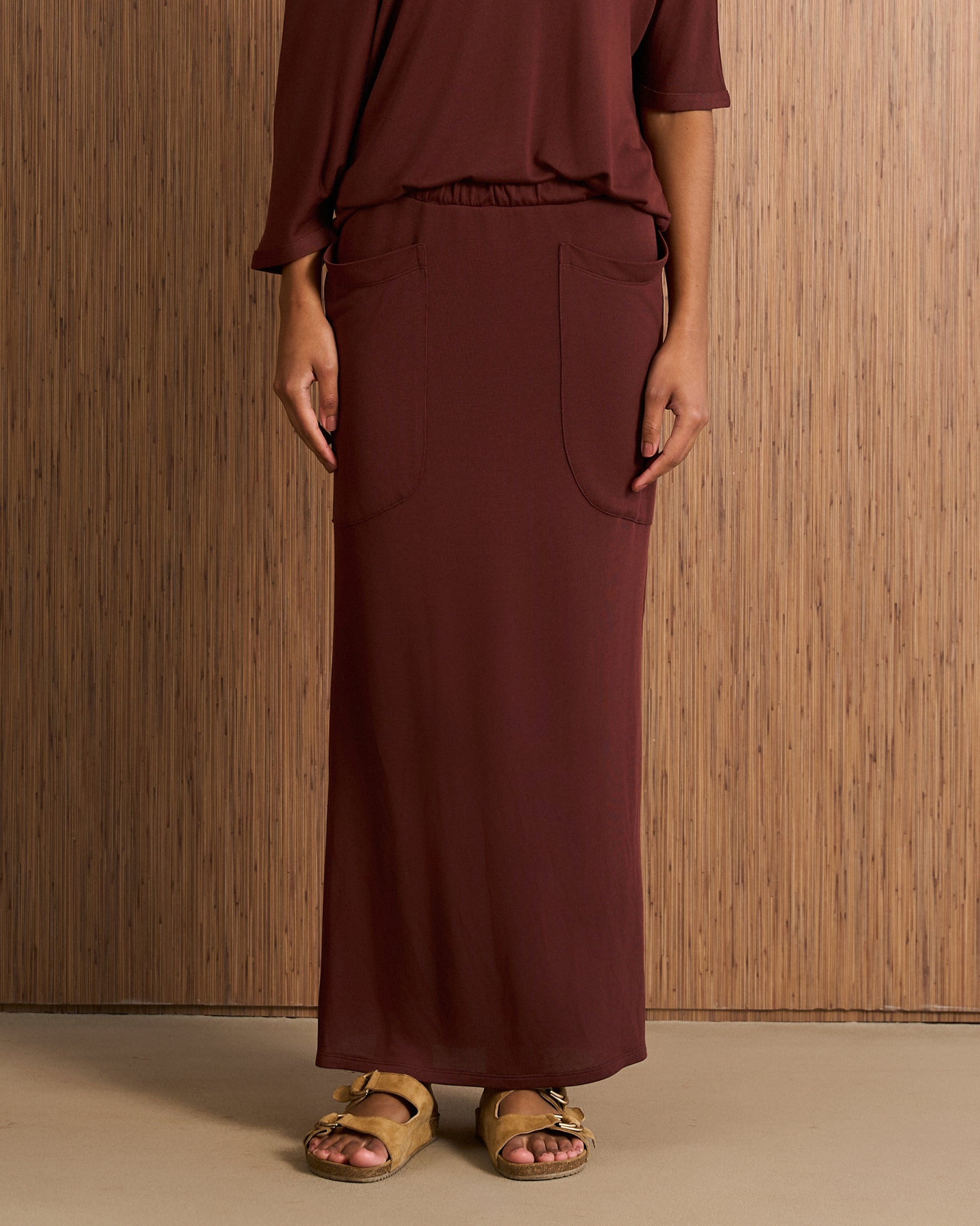 A Saia Tubo foi desenvolvida em malha super leve, de toque macio e caimento fluido, proporcionando conforto e movimento. Possui modelagem reta e comprimento midi, além de fenda nas laterais que traz liberdade de movimento e um detalhe sutil à peça. Possui cós de elástico e bolsos aplicados na frente, além de forro do mesmo tecido.